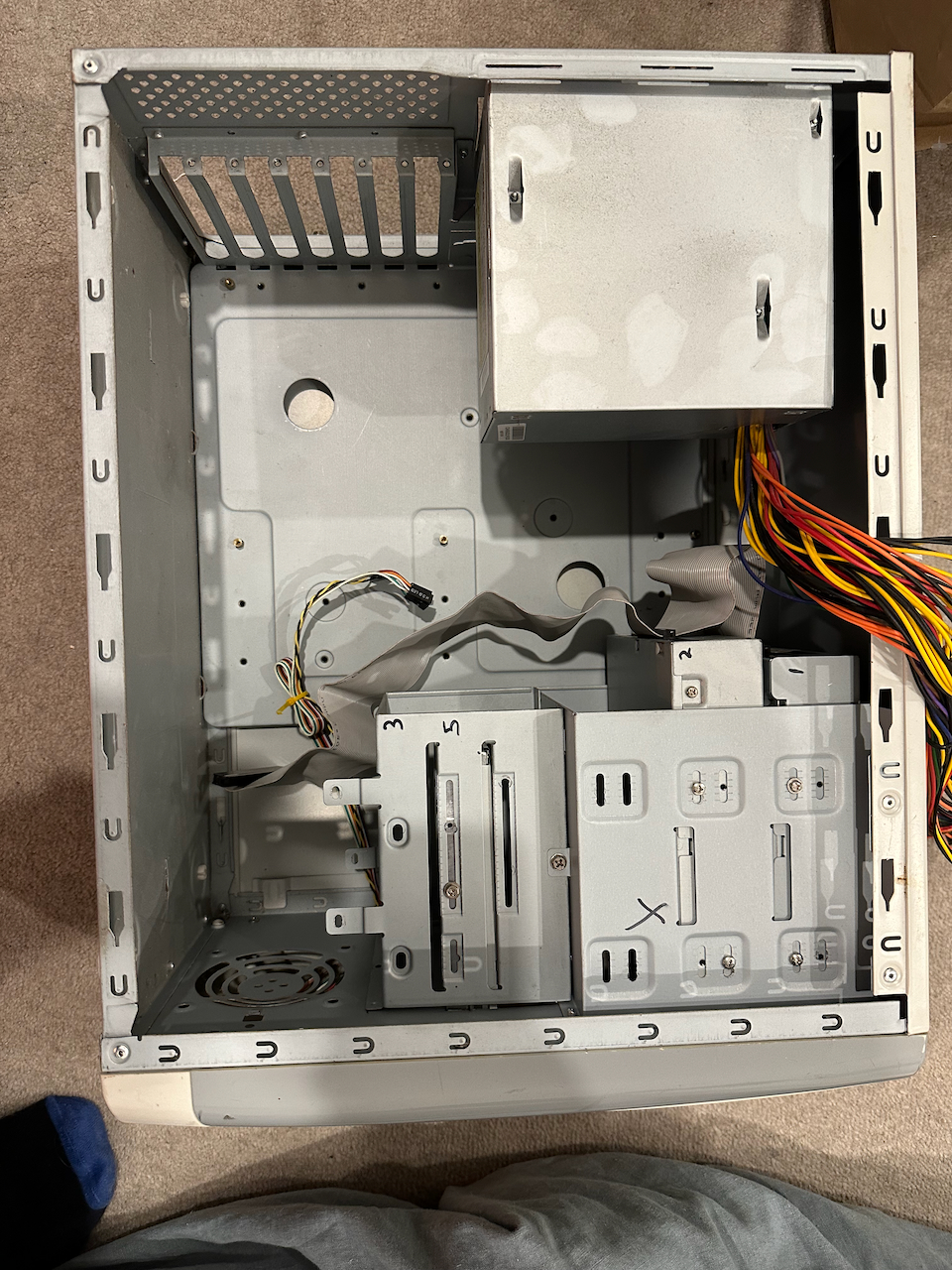 Case received, board + chip received. Pulled this open and took a look, well at least it has most of the board mounts! And a lot of dust. The PSU is 420W, so I guess it’s newer than the case. Hopefully nothing will go pop. No time to do much more today.